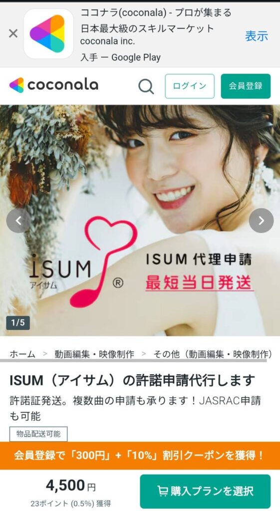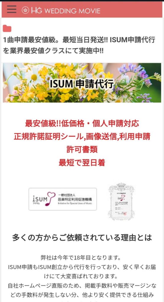 ガルニはココナラで出店しているサービスで、ブライダルギフトやムービーを提供していますが、ISUM申請代行も行っています。さすがココナラという安さです。