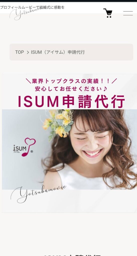 よつ葉ムービーは基本的には結婚式用のムービーの制作を行っているサービスですが、ISUM申請代行も行っています。業界トップクラスの安さと謳っているため、価格の安さが期待できます。また、個人としてココナラ、Creema、minneに出店しているため、それらのサイトで口コミを確認することができます。以下評価は最安値である自社サイトを対象とします。