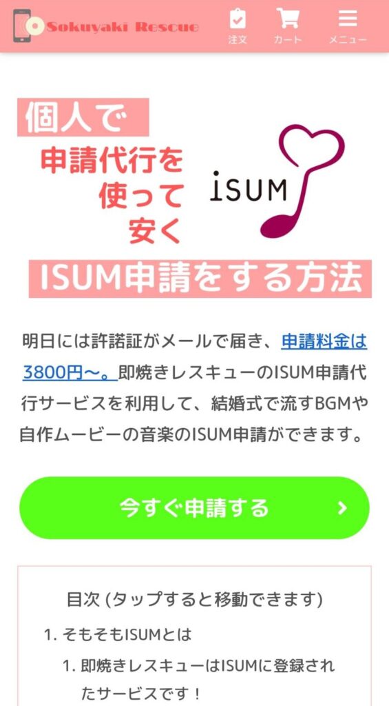 即焼きレスキューは基本的にはネットで動画を送信して注文し、オリジナルのDVDやブルーレイを宅配するサービスですが、ISUM申請代行も行っています。価格はどのケースでも最も安く、利便性、納期はトップレベルでした。